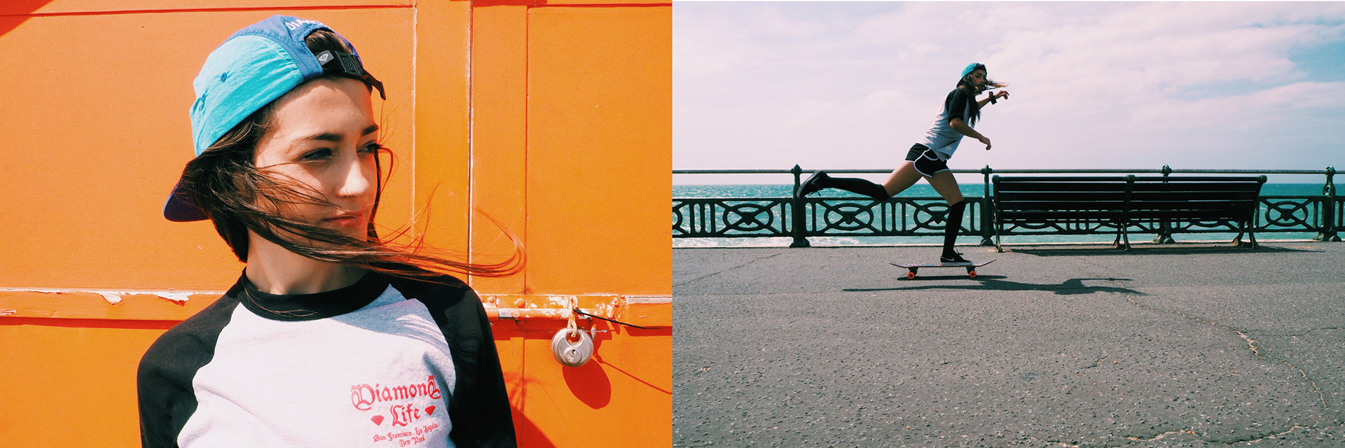Montage series of portraits and skate pushes - celebrating the diversity of faces within women's skateboarding and the iconic and uniqueness of each skate push.
